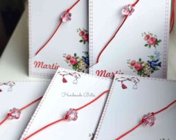 Martisor – semn de carte realizat manual cu cristale, snur matase.